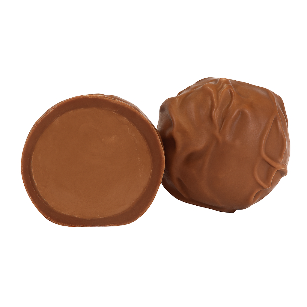 Hazelnut praline enrobed in milk chocolate.