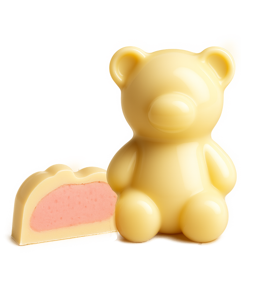 White chocolate with strawberry filling.