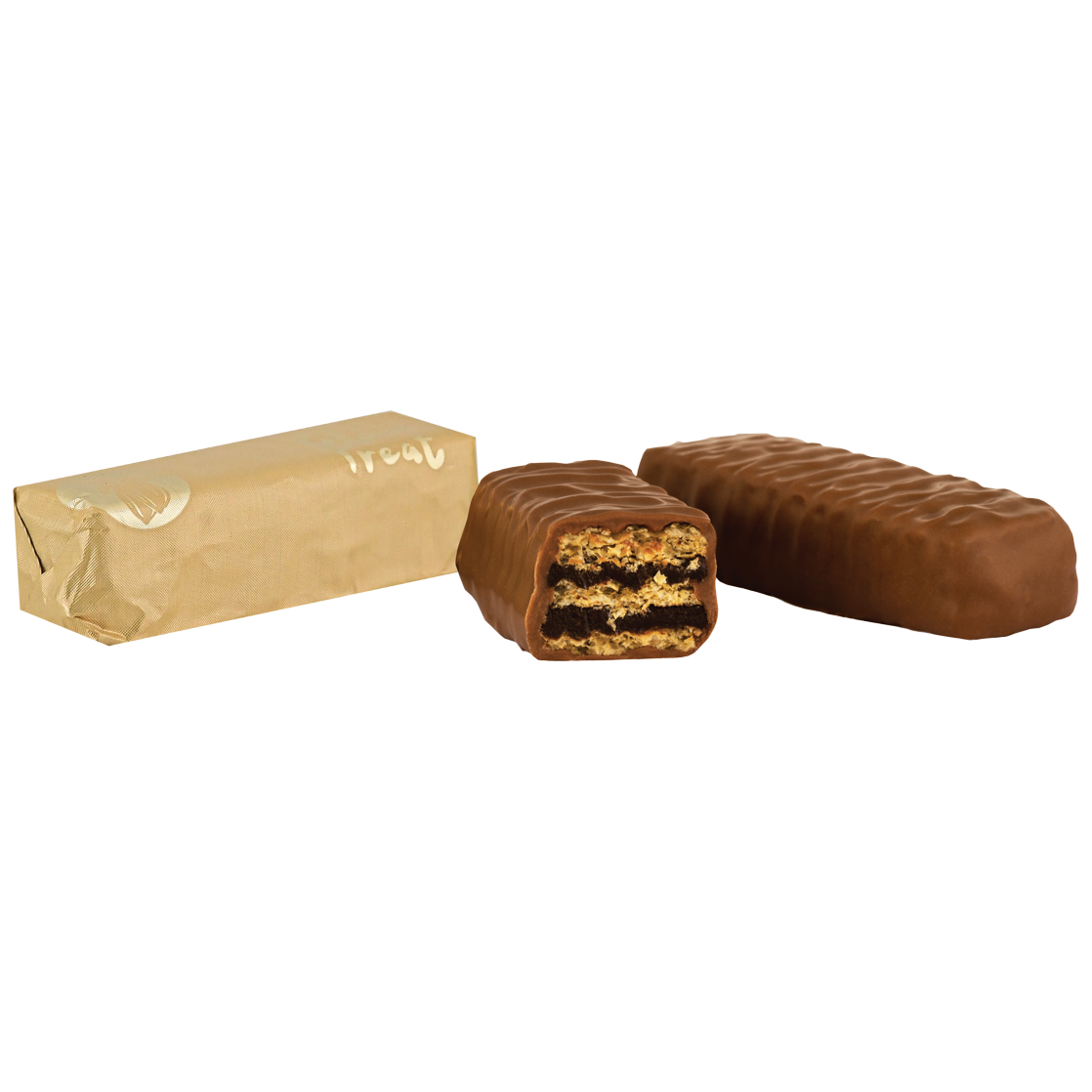 Γκοφρέτα με γέμιση πραλίνας φουντουκιού, επικάλυψη με σοκολάτα γάλακτος.