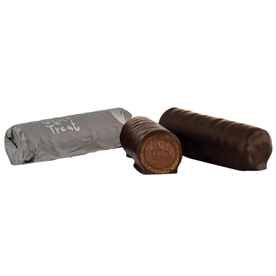 Πουράκι με γέμιση πραλίνας, επικαλυμμένο με dark σοκολάτα.