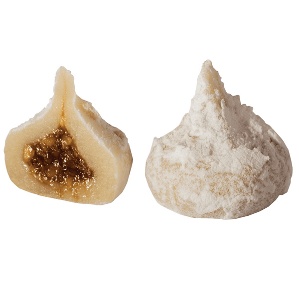 Παραδοσιακά αμυγδαλωτά αρωματισμένα με ανθόνερο και με γέμιση από καρύδια και μέλι, τυλιγμένα σε άχνη ζάχαρη.