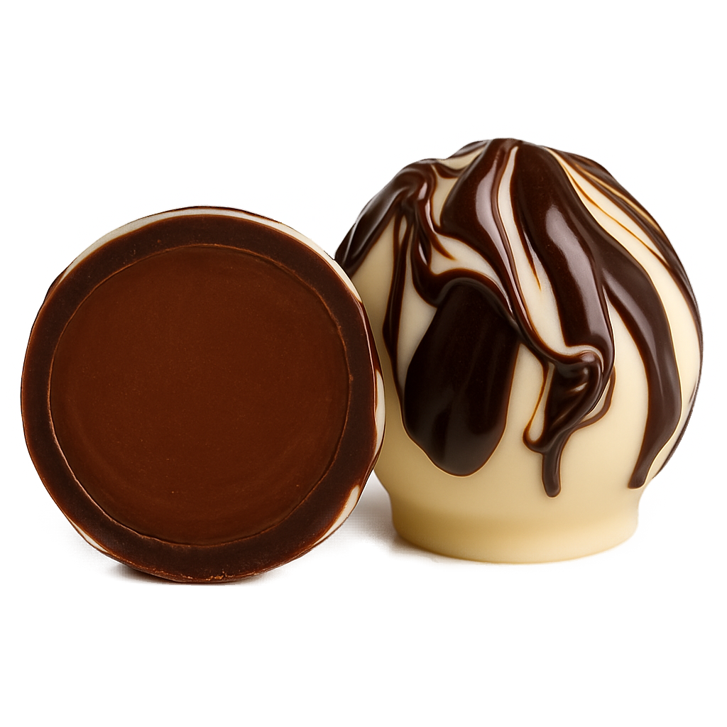 Πραλίνα φουντουκιού σε λευκή και μαύρη σοκολάτα.
