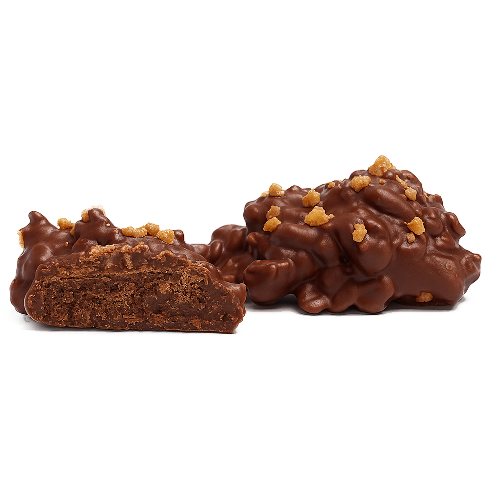 Σοκολάτα γάλακτος και κομμάτια μπισκότου, με διακόσμηση από καραμελωμένο μπισκότο.