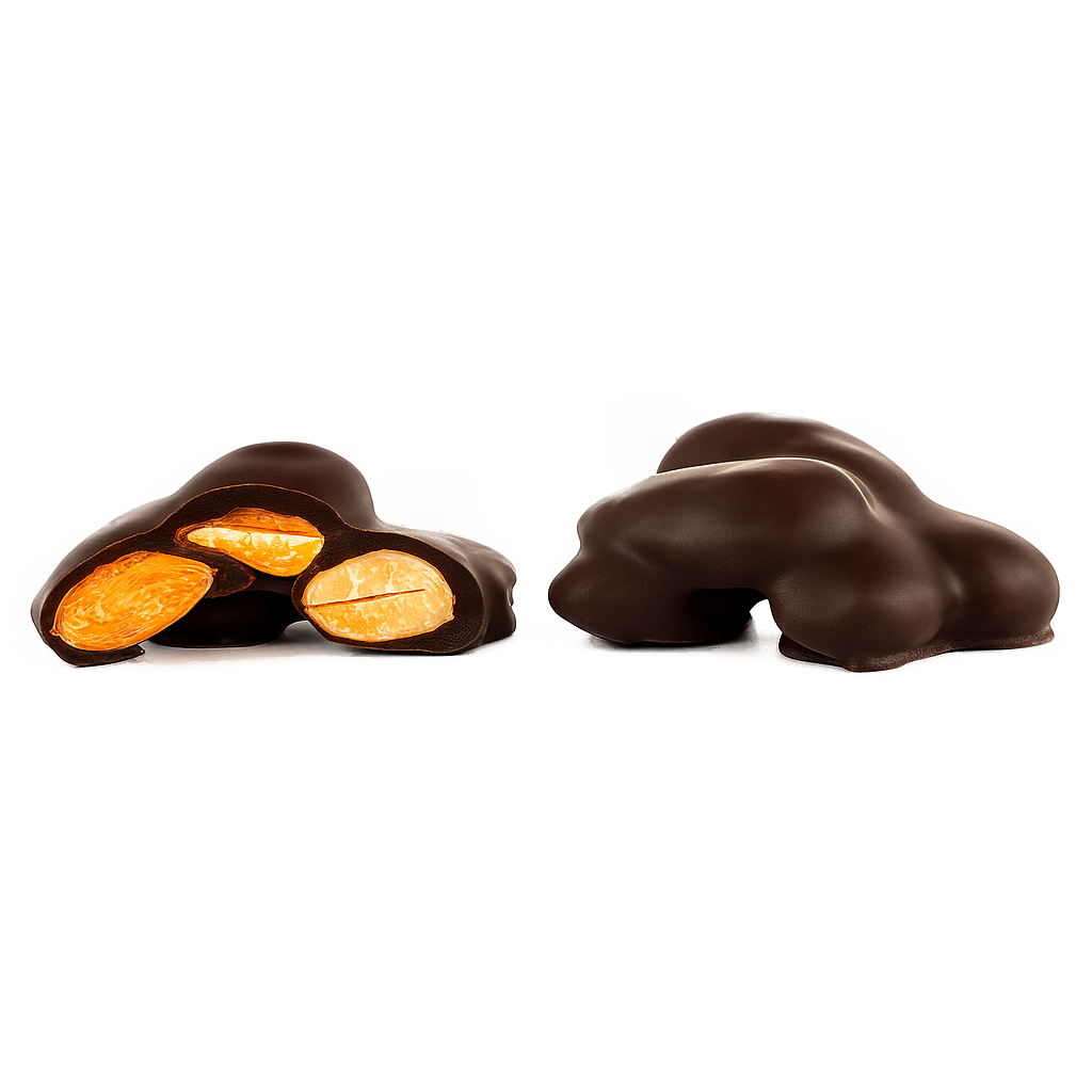 Καβουρντισμένα ολόκληρα αμύγδαλα σε dark σοκολάτα.